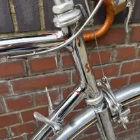 Fitted with TA Tevano Triple Chainset, Simplex SLJ5500 rear derailleur, Simplex 5500 front derailleur, Mafac Competition brakeset, Philippe stem and handlebars with Shellac handlebar tape, Simplex alloy seatpost with integral clamp, Brooks Professional saddle, Super Champion 700c Rims on Normandy hubs, alloy mudguards with Singer reinforcement to rear.