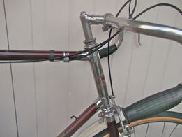 Unrestored maroon paintwork. Cantiflex tubing and traditional forks. Williams cottered chainset, Sturmey Archer FW hub gears, 26” Dunlop stainless steel rims, Reynolds alloy bars and stem, GB hinduminium brakeset, Webb pedals, Brooks saddle