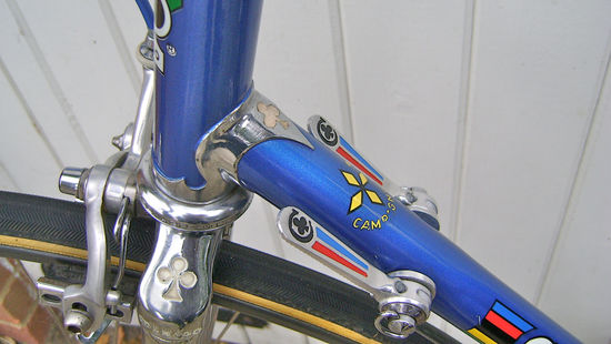 Blue flam, chrome rear stays and full chrome forks, factory machined Campag Super Record 'Mexico' cranks with Colnago pantographed chainrings, Campag Super Record mechs, levers, pedals and brakeset, Colnago pantographed Super Record seatpin, toe clips and ITM stem, Colnago headset, toe straps and bar tape, blue Colnago suede saddle ITM bars, Mavic SSC sprint rims on Campag Super Record hubs