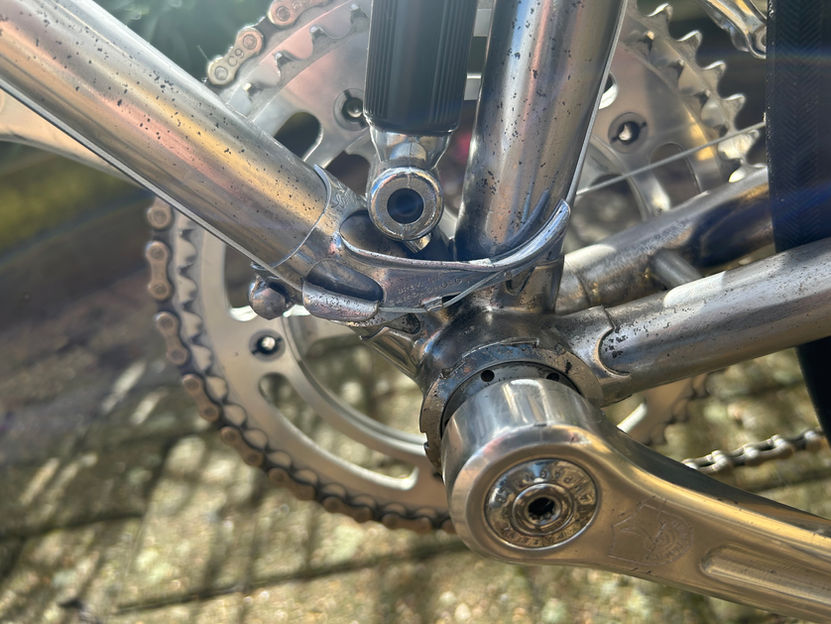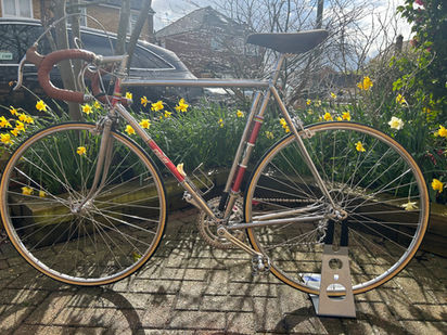 Nisi Rims on Campagnolo Hubs, Universal mod 61 brakes and levers, Campagnolo Nouvo Record front and rear mech, Cinelli saddle, Campagnolo pedals, fitted with Bar end shifters