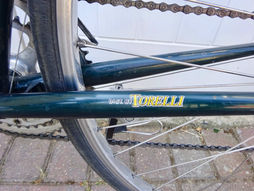 USA bike distributed by Torelli Bicycle Company, California, the build was subcontracted to Bilatto in Italy. Imported as bare frames where they were decaled and painted by Masi USA painter Jim Allen. The decals were the logos of companies who bought adspace on the actual frames so Torelli could lower the selling price of the frame by $50-$100. It worked, but then the frames started selling well enough that they were able to ditch the decals after two years!
