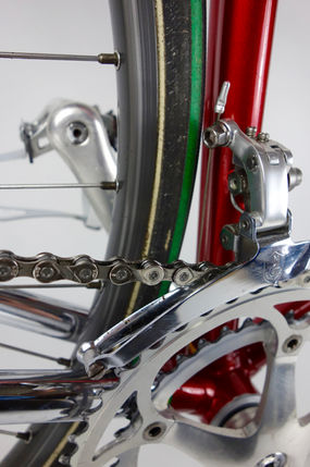 This frame is made with Picchio specific ‘Rigido’ fluted tubing and internal cable routing. It is fitted with a Campagnolo C Record groupset. Ofmega pedals, Cinelli bars and stem and Rolls saddle