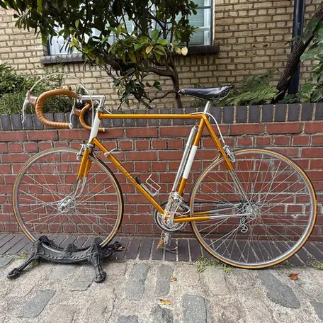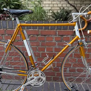 Frame in original condition and built from Reynolds 531 tubing and fitted with René Herse triple chainset, Huret Jubilee Titanium rear derailleur,Huret Jubilee front derailleur, Cinelli stem and handlebars, Shellac bar tape Campagnolo Record brakeset,Campagnolo seat post with Brooks French market 'Selle Rodée Main' saddle, Stronglight headset, Campagnolo Record pedals, Super Champion Competition tubular rims on Campagnolo Record hubs.
